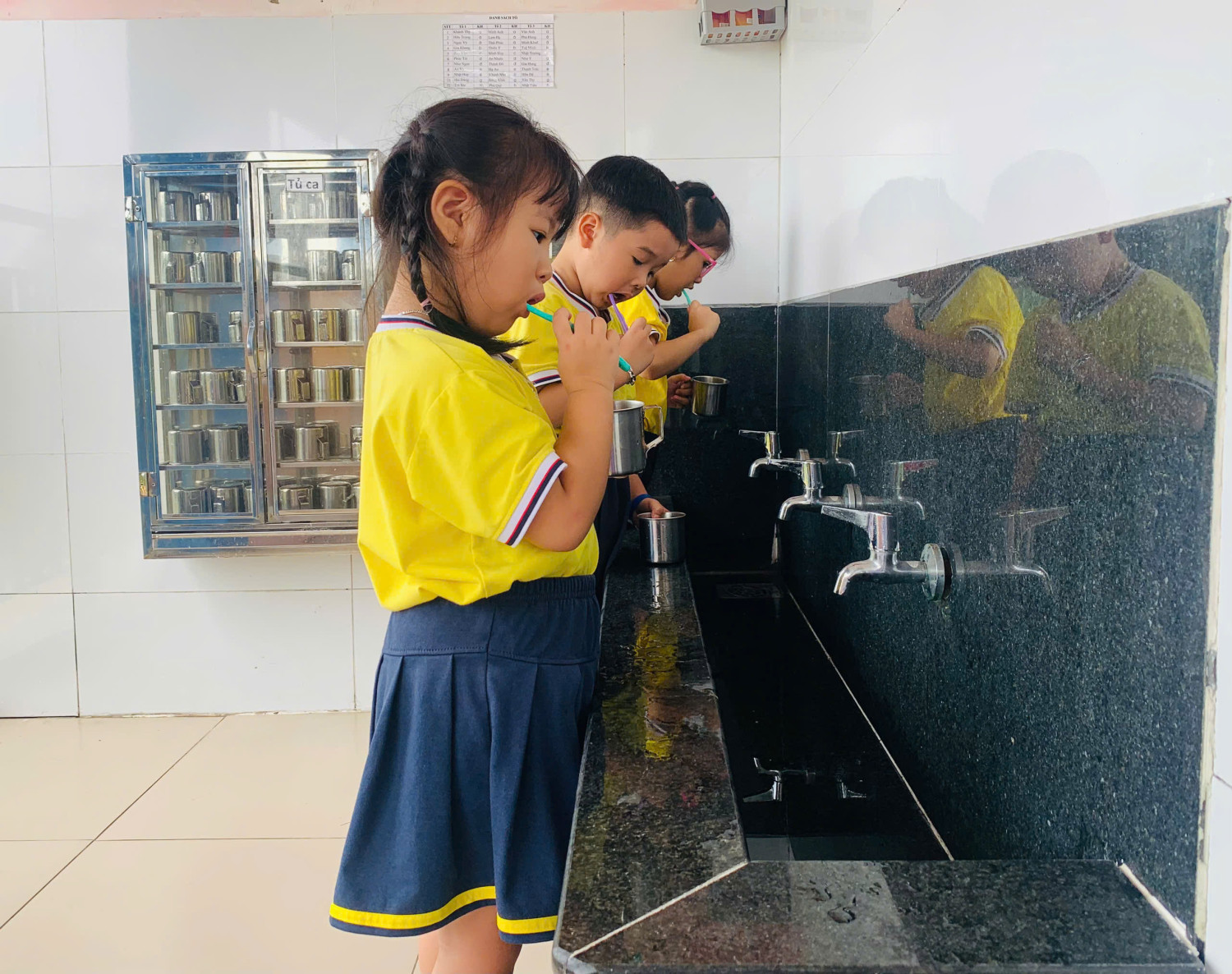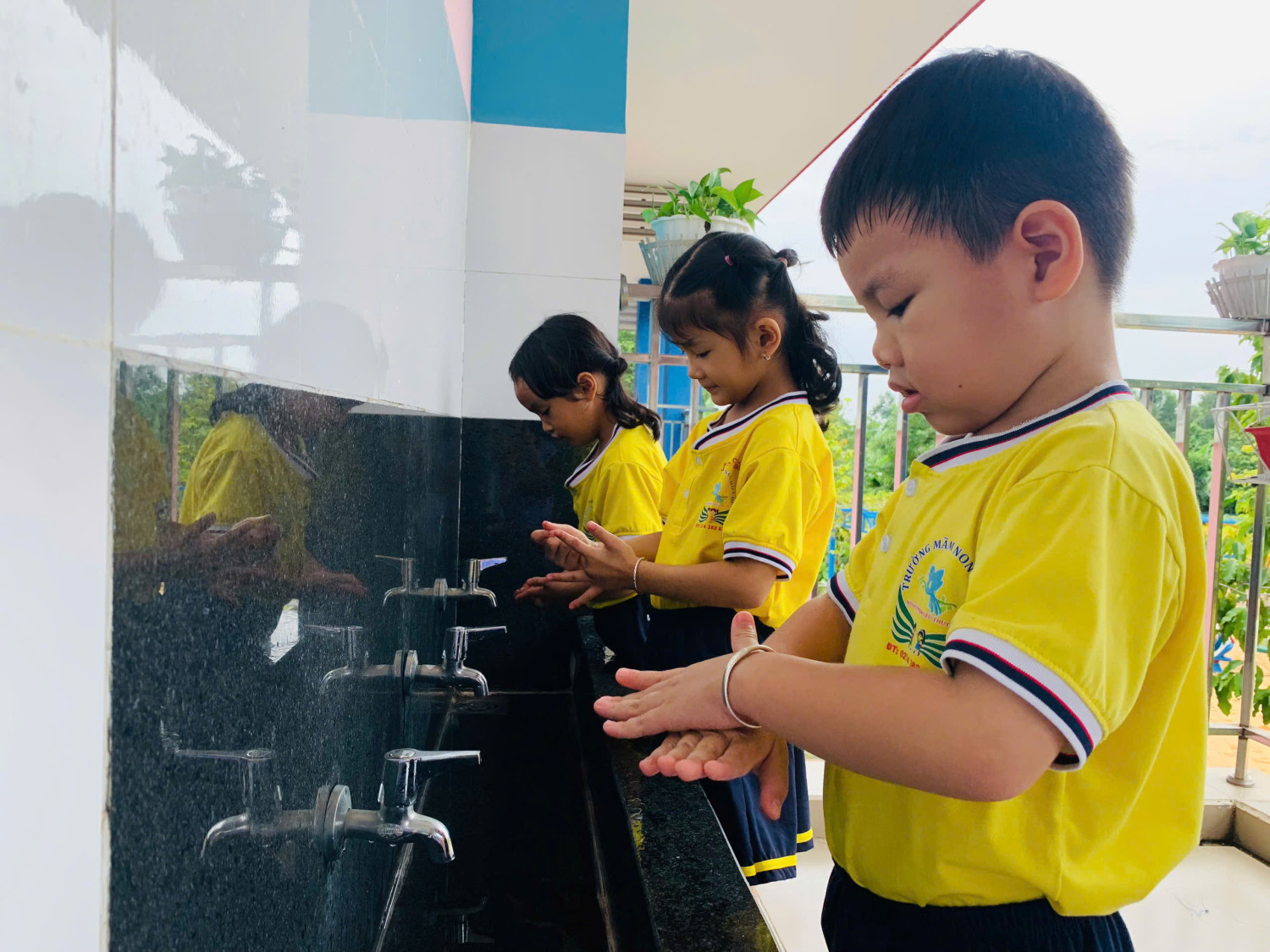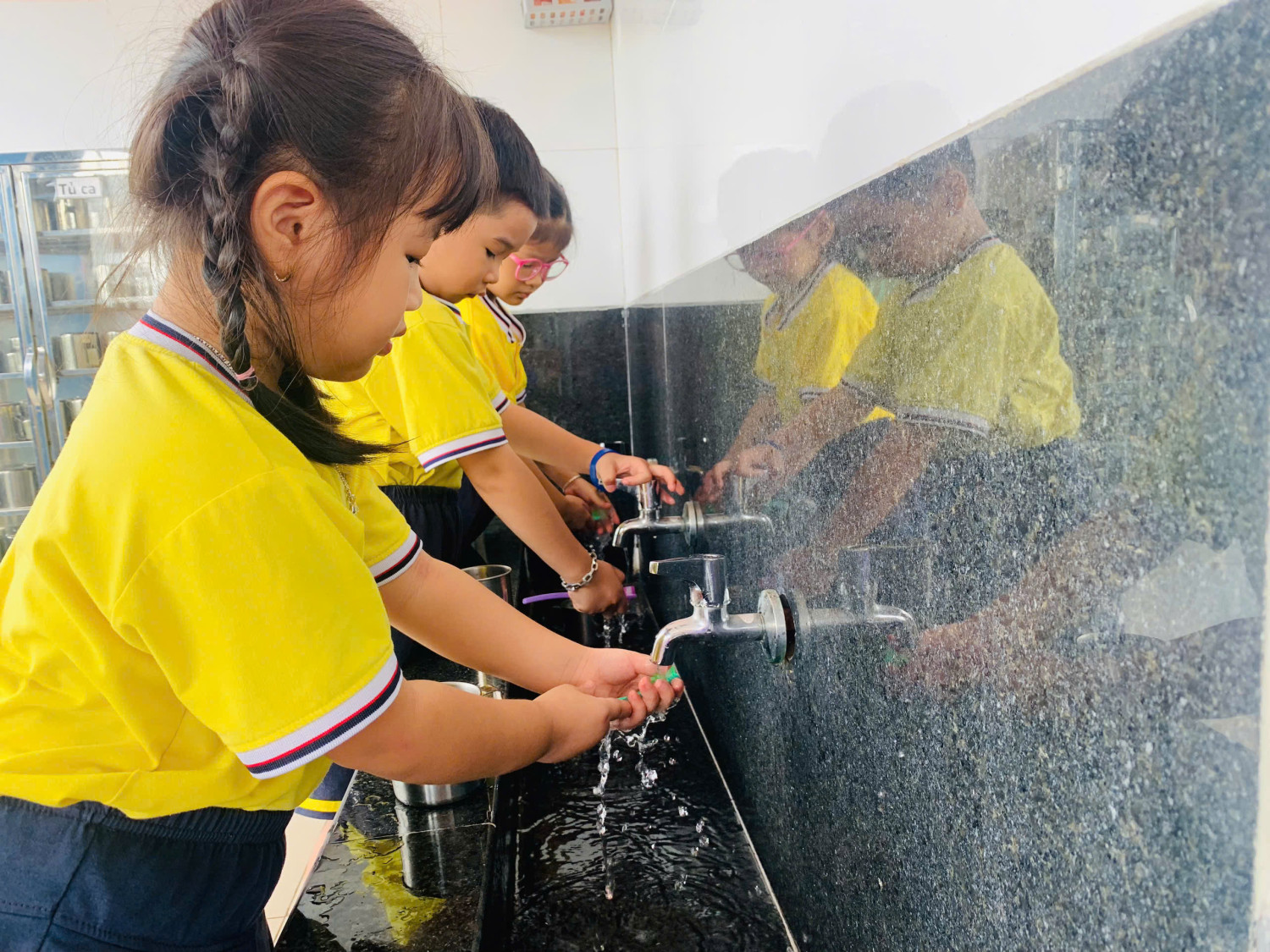 Giữ gìn vệ sinh cá nhân là một kỹ năng quan trọng mà trẻ cần được rèn luyện từ những năm đầu đời. Tại Trường Mầm non Họa Mi, các bé được làm quen và thực hành hằng ngày những thao tác vệ sinh quen thuộc như rửa tay bằng xà phòng trước khi ăn và sau khi đi vệ sinh, lau mặt sau giờ ăn, chải tóc gọn gàng hay bỏ rác đúng nơi quy định.