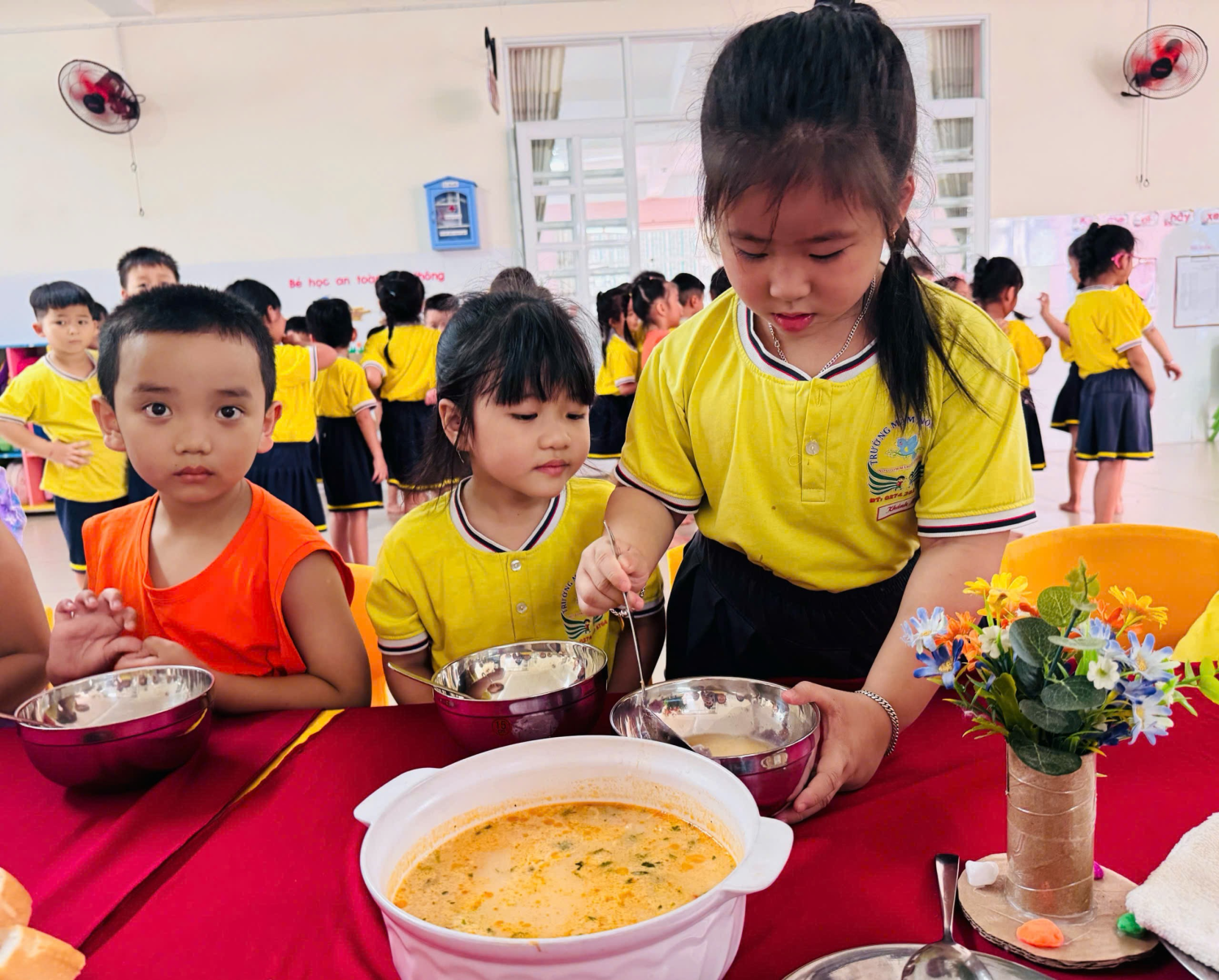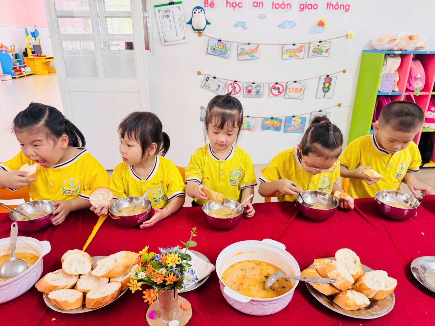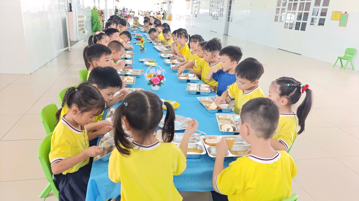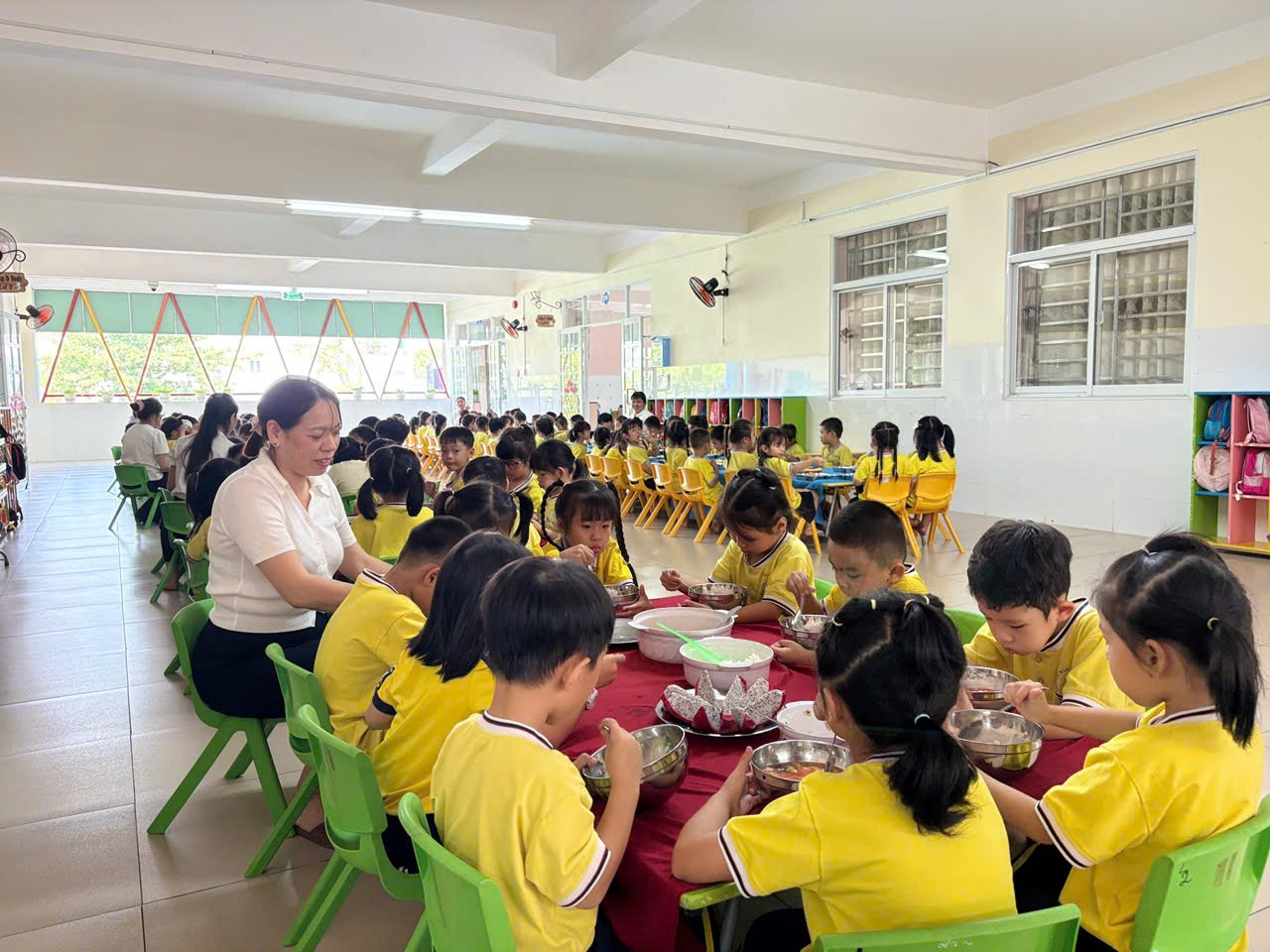Trong không gian lớp học ấm áp, giáo viên luôn ân cần bên trẻ, khuyến khích trẻ ăn ngon, ăn đủ, hình thành thói quen ăn uống lành mạnh và nề nếp. Mỗi bữa ăn trôi qua là thêm một niềm vui, thêm một bước trưởng thành của trẻ.
